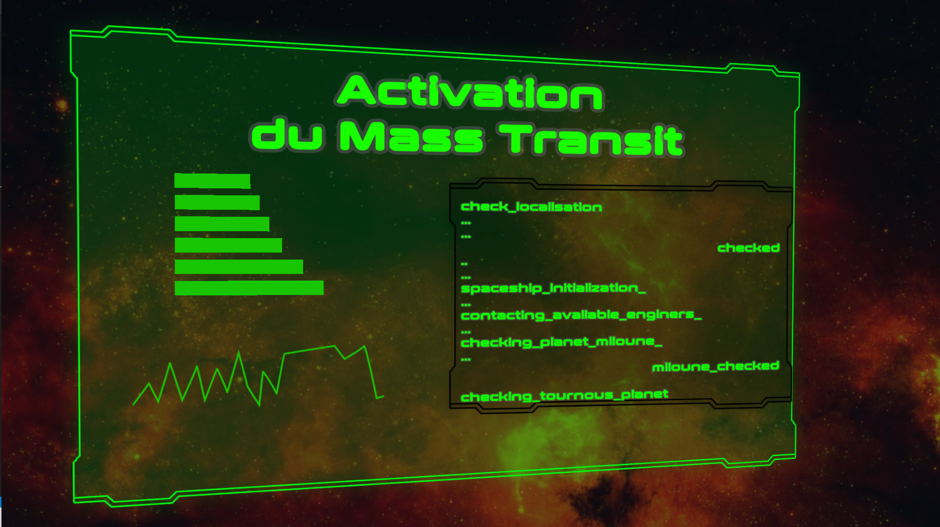 J'ai aussi réalisé des interfaces immersives, ayant le même rôle de compagnon pour escape Game, mais en plus centrale et projetées sur un grand écran.